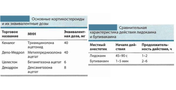 Местные анестетики и кортикостероиды комбинируются в различных пропорциях и вводятся в одном шприце.