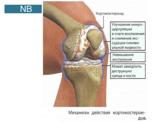 Исходя из имеющихся данных, разрушение хрящевой ткани при остеоартрите вызвано основной патологией, а не побочными действиями кортикостероидов. Рекомендуется делать интервал между внутрисуставными инъекциями в 3 месяца.