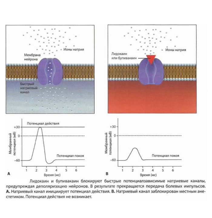 Это предотвращает деполяризацию нейронов, прекращая передачу болевых сигналов в мозг. Дозы 1% лидокаина и 0,25% бупивакаина эквивалентны, но их действие начинается и длится по-разному.